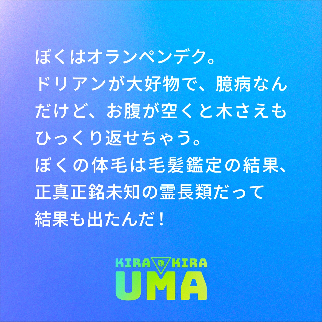 ぼくはオランペンデク。ドリアンが大好物で、臆病なんだけど、お腹が空くと木さえもひっくり返せちゃう。ぼくの体毛は毛髪鑑定の結果、正真正銘未知の霊長類だって結果も出たんだ!
